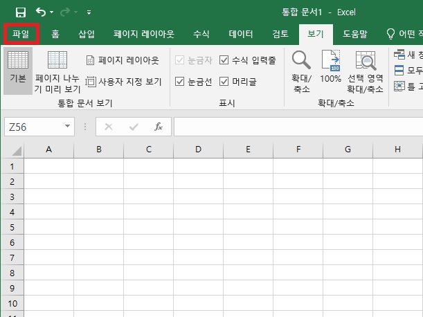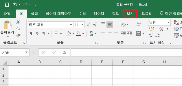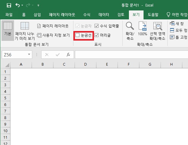 눈금선이 없거나 보기에 없애려고 할때 (머리글, 수식 입력줄 포함)