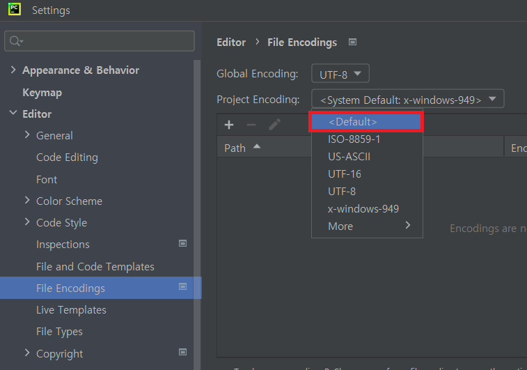 디폴트로 설정하니 인코딩 에러 없이 잘 실행된다.