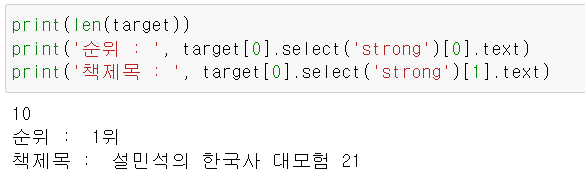 순위와 제목이 포함되어 있는 걸 알 수 있다.