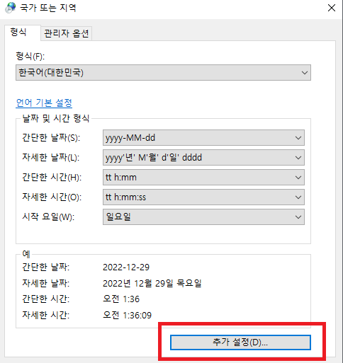 | 윈도우 작업 표시줄 시간 요일 표시하기 (0) | 2022.12.29 |