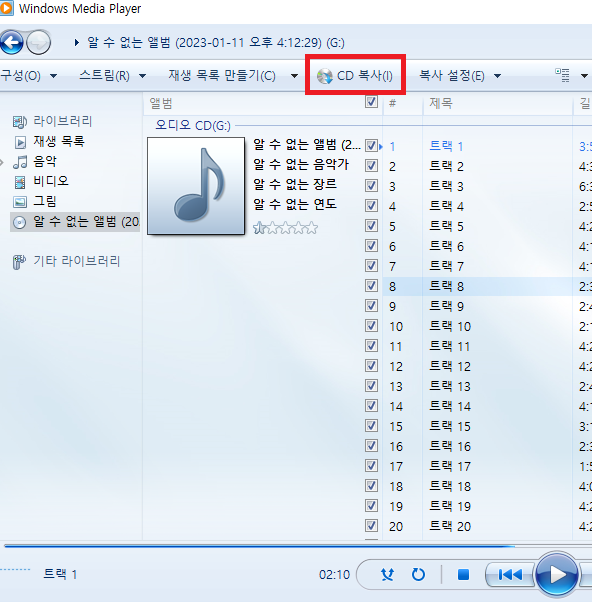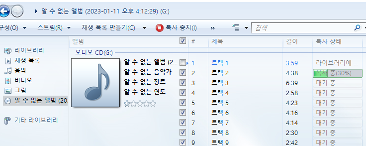 cd를 제대로 인식한경우 앨범이 보일 것 이다