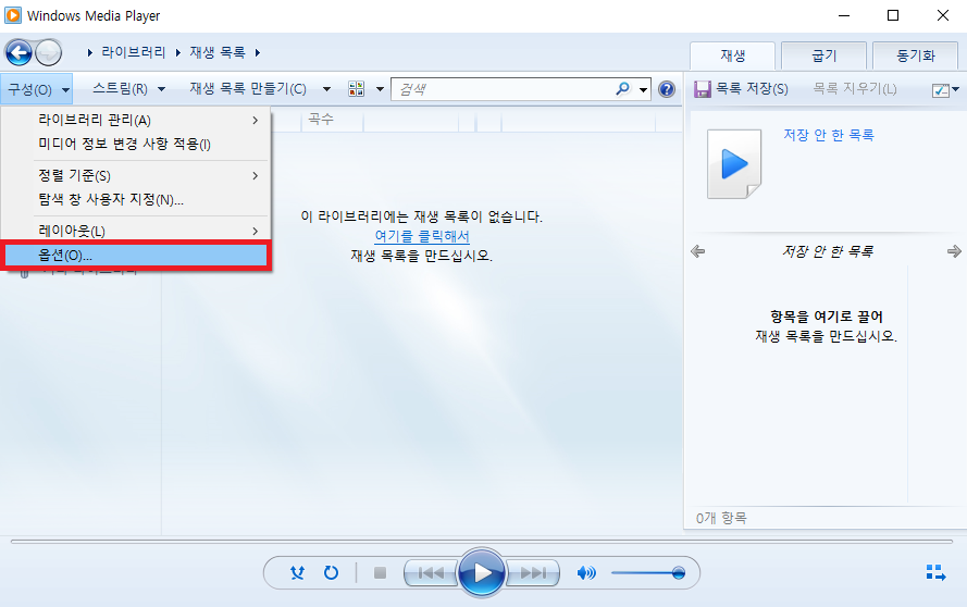 Windows Media Player를 통해 파일 추출