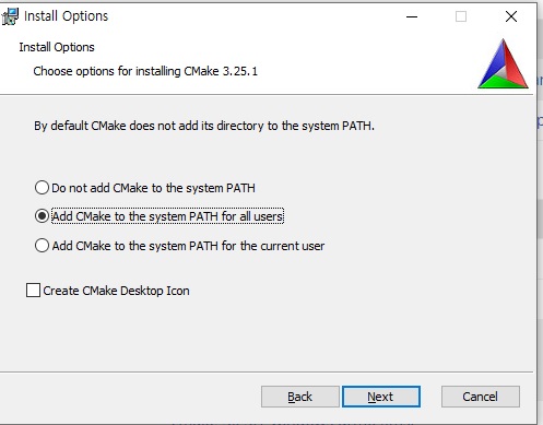 명령프롬프트(cmd)에서 cmake쳐보면 사용방법에 대해 나오면 설치가 완료된 것이다.