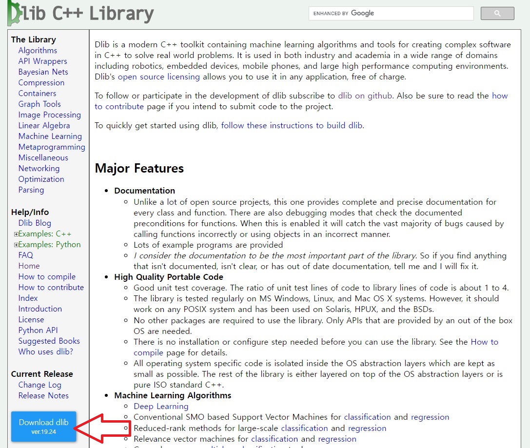 dlib 공식 홈페이지