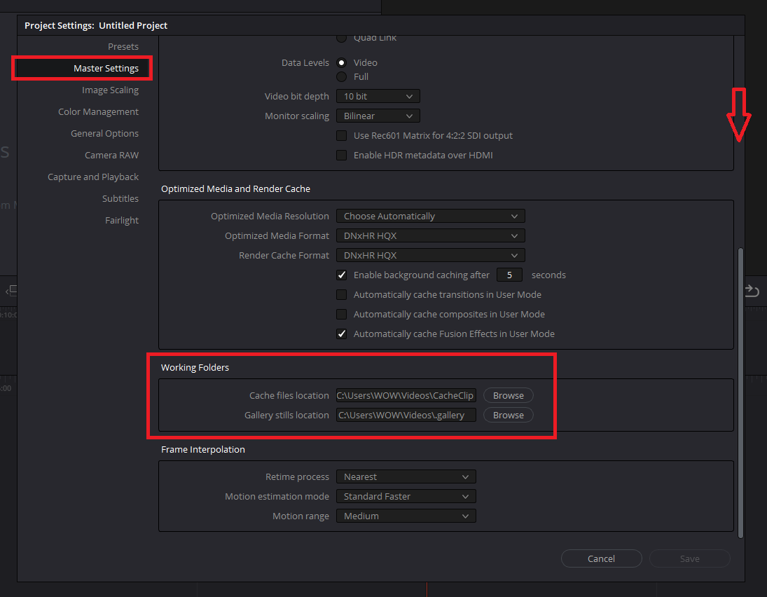 Project Settings 창에서 -> Master Settings -> 밑으로 스크롤 내리면 Working Folders에 Cache files location 부분에서 Browse를 클릭해 원하는 경로로 옮겨주면 됩니다.